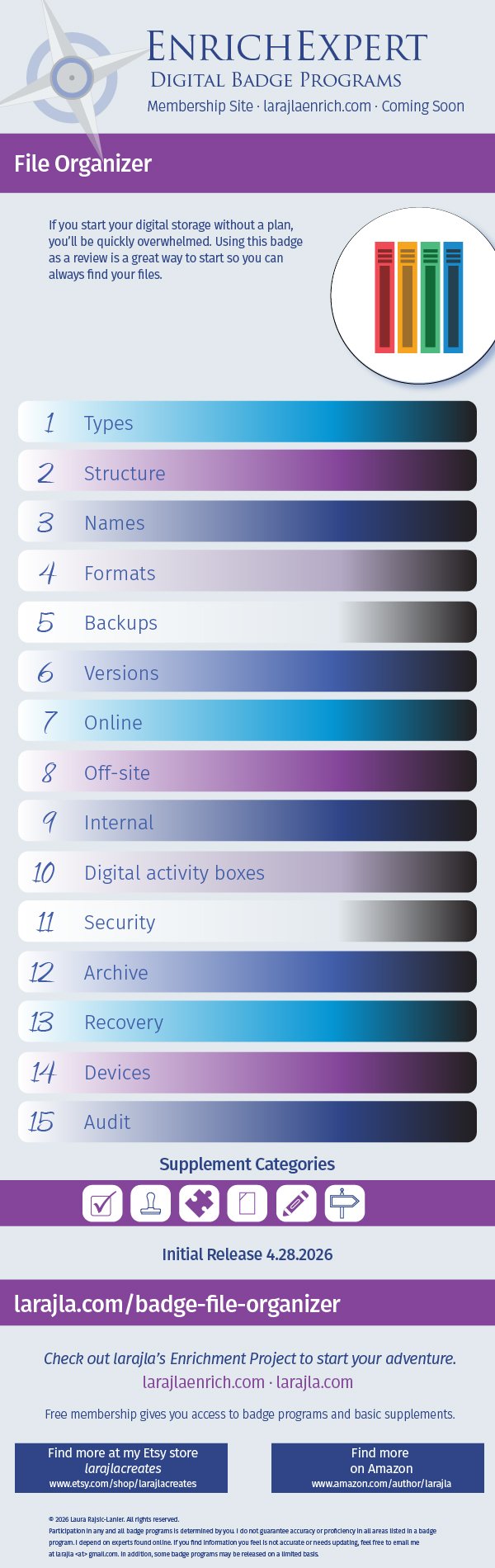 - Digistamp Fun_File Organizer_MS2_larajla — Digistamp Fun: File Organizer badge redesigned as a digital stamp